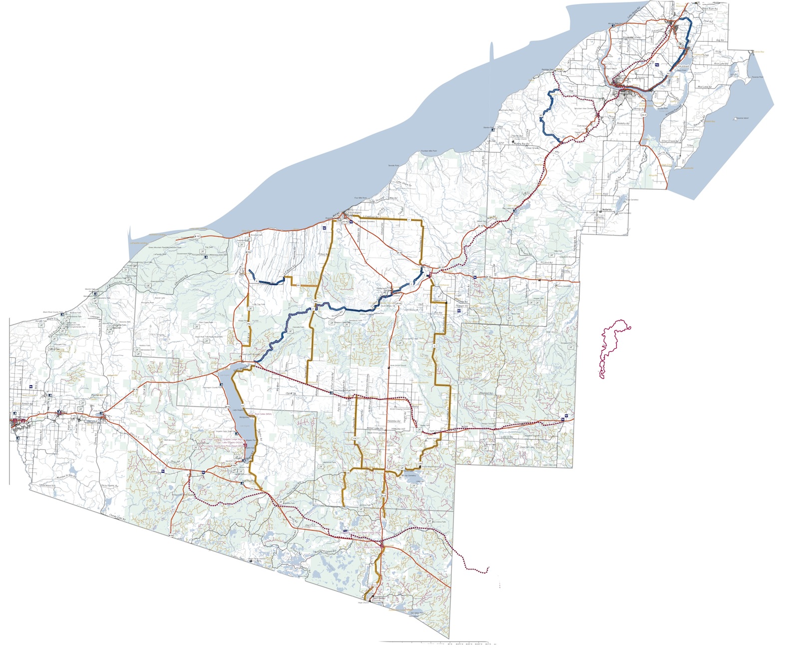 Big picture of Mi-TRALE's preferred routes and local trails: